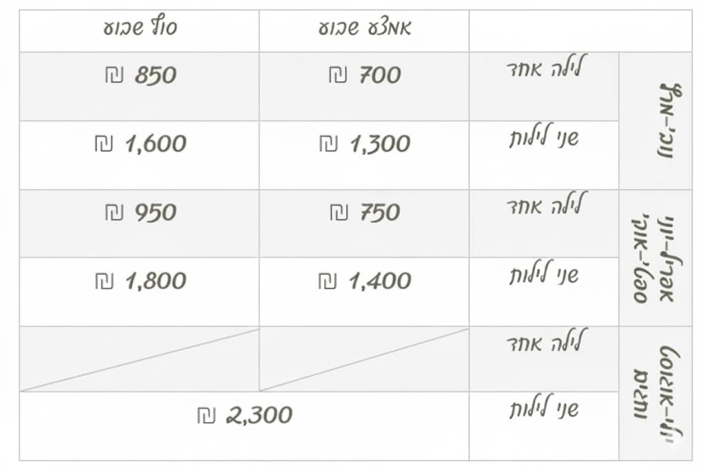 הזמנה בסופי שבוע מותנת בהזמנה של כל המתחם